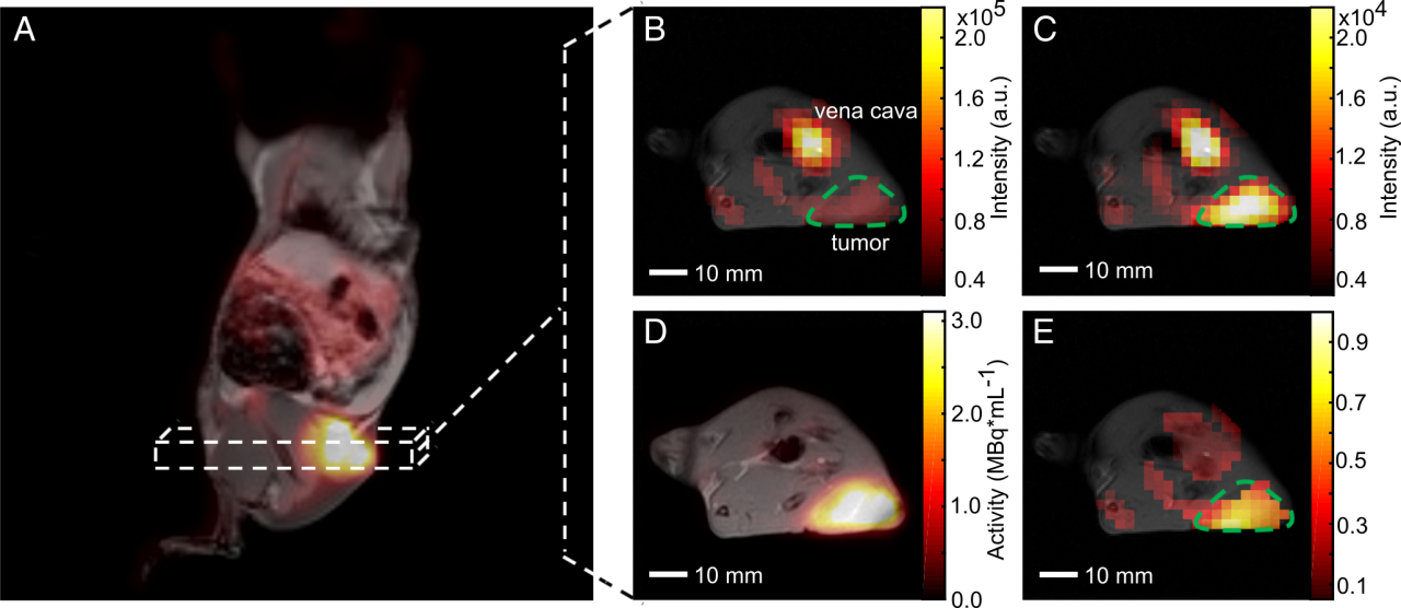 We attempt to assess the flux of glucose through the glycolytic pathway simultaneously with both FDG-PET and pyruvate imaging. In a recent study, we established and validated a workflow at a clinical whole-body PET/MR for the multiparametric characterization of the glycolytic flux in a pre-clinical MAT-B-III breast cancer model. We analyzed the in vivo correlation of FDG uptake with pyruvate-to-lactate conversion and performed a longitudinal study with a group of tumor-bearing rats to study the effect of changing tumor cellularity on metabolic PET and MRSI data (see Figure 1).